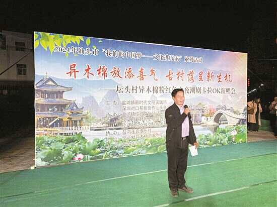 新快报讯 记者曾贵真报道 近日,汕头市澄海区盐鸿镇坛头村异木棉游客中心一场“异木棉放添喜气 古村落呈新生机”潮剧卡拉OK晚会热闹非凡,好评如潮。原来,这是盐鸿镇新时代文明实践所、深圳对口帮扶协作汕头驻盐鸿镇工作队联合镇综合文化站、镇妇女联合会、镇关工委、坛头村新时代文明实践站、坛头村综合性文化服务中心,邀请盐鸿莲音潮乐社的潮剧演员举办文化惠民活动。 活动现场,潮剧演员轮番登台献唱,而卡拉OK晚会开放共享的舞台形式更是吸引观众互动。《寒梅傲雪冠后宫》《让天下百姓常开颜》《松涛松涛我的亲人》等经典潮剧唱段接连上演,演员惟妙惟肖、情感饱满地演绎出传统潮曲的独特魅力,现场掌声不断,好评如潮。 演唱会在坛头村异木棉景区进行。近日,盐鸿镇坛头村灵慧瑶池旁的异木棉景观受到广泛关注。两棵近10米高的粉色异木棉在冬日暖阳的照耀下双双盛放,一片花影粉海尽收眼底,吸引了众多市民和游客前往观赏“打卡”。据了解,异木棉是常见绿化观赏树,预计花期可持续到明年1月份。驻盐鸿镇工作队与坛头村委积极协作,通过为异木棉景区配套服务设施、积极组织群众性文体活动,将坛头村景观长廊、灵慧瑶池、鸣凤广场等多处景观节点串珠成链,打造当地又一农文旅相结合的典范项目。 本次潮曲演唱会是2024年汕头市“我们的中国梦——文化进万家”系列活动的成果之一。接下来,驻盐鸿镇工作队将持续常态化开展各类群众喜闻乐见、乐于参与的文化活动,通过推动基层文化阵地建设增强群众的文化获得感和幸福感。