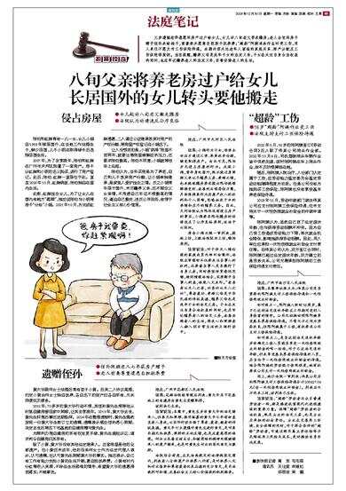 八旬父亲将养老房过户给女儿 长居国外的女儿转头要他搬走