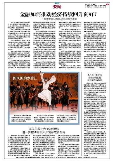 ——聚焦中国人民银行2025年任务清单 2025年,金融如何推动经济持续回升向好,助推经济社会高质量发展?3日至4日召开的2025年中国人民银行工作会议释放一系列政策信号。 中国人民