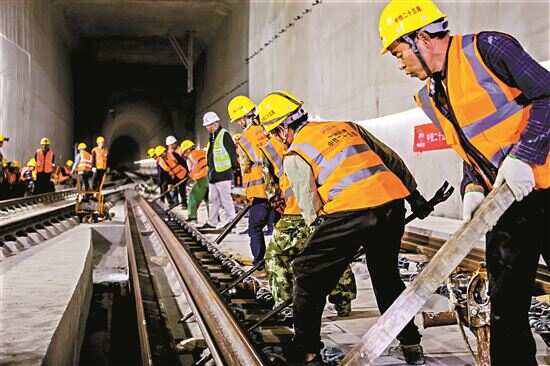 ■1月6日,广佛东环城际铁路全线铺轨顺利完成。该城际起于广州南站,向北连接生物岛、琶洲会展中心、天河区金融城,接入新白广城际铁路竹料站。新华社发