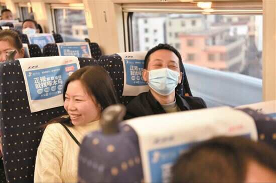 新快报讯 “回家喽!”1月12日6时32分,天空初露微光,广铁集团广九客运段值乘的G1136次列车载着700余名湖北荆门籍在粤务工人员驶出广州南站,一路直奔荆门西站。 据铁路部门介绍,该趟列车是由湖北荆门市人力资源和社会保障局联合广铁集团共同组织的爱心高铁返乡专列,也是今年粤港澳大湾区开出的首趟爱心返乡专列。 清晨时分,微风轻拂,空气中弥漫着淡淡的寒意。在繁忙的广州南站10站台上,返乡过年的务工人员拉着满满当当的行李,有序地排队等候上车。列车乘务人员精心布置了车厢,车窗贴上喜庆的窗花,营造出新春的氛围。大伙脸上都洋溢着幸福的笑容,整个场景充满了温馨和喜悦。 “今年收入还不错,能回家过个好年咧,现在最想回家抱抱老婆孩子。”荆门东宝区的杨卫华在广州工作5年,回家的行李中给妻子准备了一件新款羽绒服,还给孩子买了玩具车,“我都能想到下午到家,我家崽崽拿着玩具车咧开嘴笑的样子。”他说,这是第一次报名乘坐“返乡专列”。“免费坐高铁回家真好,给我省了几百块车票钱咧。” “以前回荆门只有绿皮车坐,现在高铁7个小时就能直接到家门口,比之前坐绿皮车快了9个小时,回家路上还能欣赏沿途风景。”在广州从事服装花纹设计工作的韩旭兴奋地向记者说道。荆荆高铁开通前,她回家只能乘坐16个小时的普速列车,或者在武汉转大巴,回家时间长还折腾,去年年底家乡通了高铁,回家的路更加顺畅,内心十分激动。 “前几年工作忙,都没回家过年,快一年多没见到父母了,怪想他们的。”家在荆门钟祥的曹宝辰,这是他时隔三年来第一次回乡过年,聊到自己的父母,他的眼眶有些湿润。“今天晚上就能吃上老妈做的风干鸡,在外最怀念的就是这一口。” “我们为务工人员设置了专用集合点,开通了进站、安检绿色通道,并安排了12名志愿者在地铁、公交、大巴站等交通接驳处所提供乘车指引、重点人员帮扶等服务,方便务工人员快速进站乘车。”广州南站值班站长钱起龙介绍。 “在列车上,我们加强对重点旅客的服务和卫生清洁工作,及时为旅客提供周到的服务。同时,我们还为旅客准备了归途暖茶,午餐时间将有工作人员送餐至座位,确保旅客感受到家的温馨。”列车长蒋思宇说道。 据了解,节前广铁集团将陆续开行前往毕节、贵阳、荆门等方向返乡专列,让务工人员回家的旅途更方便、更舒适、更温暖。 返乡有专列,返岗也不愁。节后,铁路部门将根据各级地方政府和企业的复工复产安排,开行湖南、广西、贵州等方向的“返岗专列”,全力保障企业用工所需。 ■新快报记者 许力夫 麦婉诗 通讯员 黄惠萍 胡靖 董剑锋 蔡云 粤仁宣