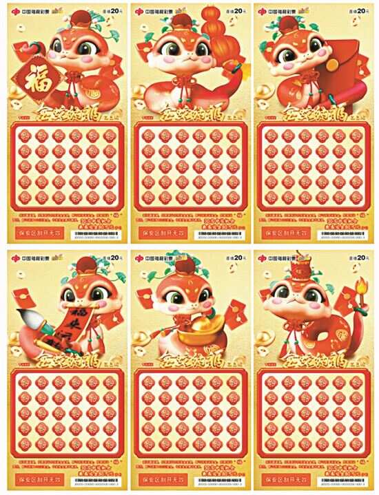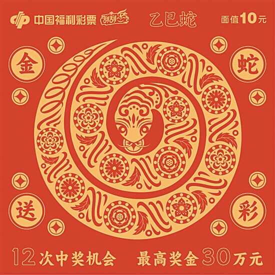 新快报讯 记者陆妍思 通讯员中福彩报道 新祥龙摆尾辞旧岁,金蛇纳福启新程。2025年新春到来之际,中国福利彩票“乙巳蛇”生肖主题即开票如约上市,恭贺新春佳节、弘扬春节文化、传递美好祝福。 根据干支记年法,天干为“乙”,地支为“巳”,故称乙巳蛇年。蛇在中国传统文化中“出镜率”很高,《白蛇传》《西游记》等经典故事中都有蛇的身影。蛇被认为是智慧、机敏、长寿、吉祥等的象征,在民间很受推崇。 今年的“乙巳蛇”生肖主题票包含“金蛇送彩”“金蛇纳福”“吉祥如意”“蛇年大吉”四款游戏,面值分别是10元、20元、30元、50元,票面风格各异,主题寓意美好,设计融合了剪纸艺术、春节文化、卡通形象、手绘、传统技艺篆刻等,营造出了浓郁的文化气息、浓烈的节日气氛。 刮刮乐“乙巳蛇”生肖主题票,是传统文化的传承,是福彩文化的展现,是福彩恭贺新春、送福添彩的创新表达。值得一提的是,彩民购买的每张福利彩票,都是为社会福利和公益事业贡献力量。福彩刮刮乐公益金提取比例是20%,也就是说,一张10元的福彩刮刮乐,就有2元拨入福彩公益金。筹集到的公益金,除被广泛用于“扶老、助残、救孤、济困”等公益领域,还用于补充社保基金,惠及普罗大众。 乙巳蛇10元——金蛇送彩 面值10元的“金蛇送彩”,整体采用红黄配色,票面中央是一条盘踞的金蛇,融入了剪纸风格。“金蛇衔财”是一个具有中国传统文化内涵的吉祥象征。蛇口衔着一枚金币,寓意着财富和好运,也寓意新的一年事事顺意好彩头、添福送彩无忧愁。 乙巳蛇20元——金蛇纳福 “金蛇纳福”游戏面值20元,全套6张。卡通小蛇形象俏皮可爱,一双灵动有神的大眼睛萌化众人。灵活柔软的身姿,头顶花冠、颈戴“福”字结,乖巧的形象呼之欲出,增添了亲切的治愈感,配以张贴“福”字、悬挂灯笼、手拿红包、书写对联、身托元宝、燃放爆竹六大新年场景,营造出喜气洋洋的过年氛围。 乙巳蛇30元——吉祥如意 “吉祥如意”游戏面值30元,全套共4张。“吉祥如意”和“金蛇纳福”中的可爱形象不同,印有祥云纹饰,颇为威武霸气。票面延用了以往刮刮乐广受好评的手绘风格,采用红、黄、橙、粉四种颜色,满足购彩者多样的喜好与需求。玩法区采用如意图案作为刮开图符,呼应票面贺岁主题,传递出“新年快乐、吉祥如意”之感。 乙巳蛇50元——蛇年大吉 50元的“蛇年大吉”是一款双联游戏,借鉴了传统技艺篆刻、剪纸中阴阳的表现方式,搭配祥云、竹子、花朵等元素,巧妙地传达出“蛇年大吉”的美好寓意。
