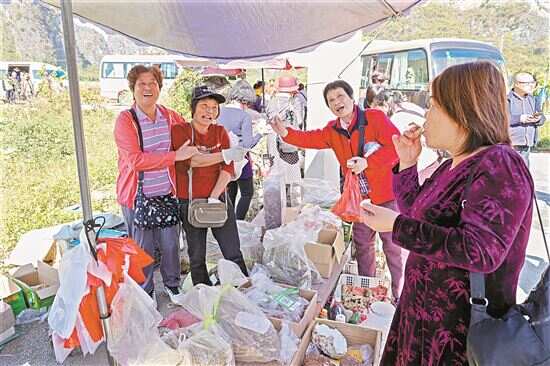 ■黄花镇公正村,广州游客争先购买土特产。 |