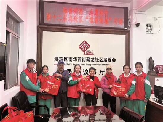 ▲广州市南武第二实验学校学生为街道群众献爱心,送上新春祝福。 |