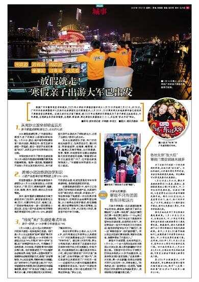 出境游 跨省游 周边游 坐邮轮 寻年味 觅美食 根据广州市教育局发布的通知,2025年小学初中寒假放假时间从1月20日开始到2月12日,共24天。广州市内各旅游集散中心及旅行