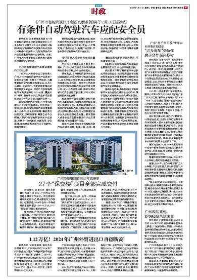 《广州市智能网联汽车创新发展条例》将于2月28日起施行 有条件自动驾驶汽车应配安全员