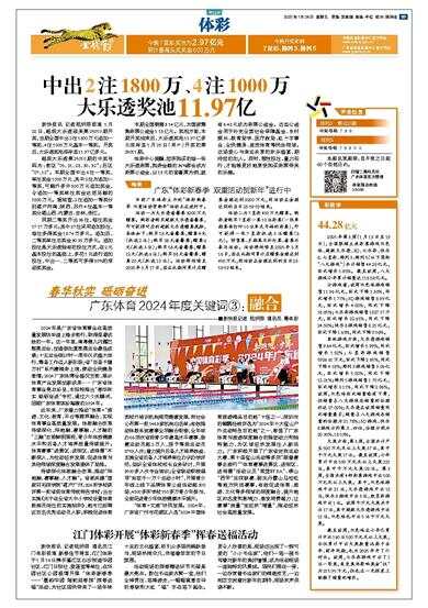 ■新快报记者 陆妍思 通讯员 粤体彩 2024年是广东省体育事业在高质量发展快车道上稳步前行,取得显著成效的一年。这一年里,南粤健儿闪耀巴黎奥运会,创造参加夏季奥运会最佳成绩;十五运会倒计