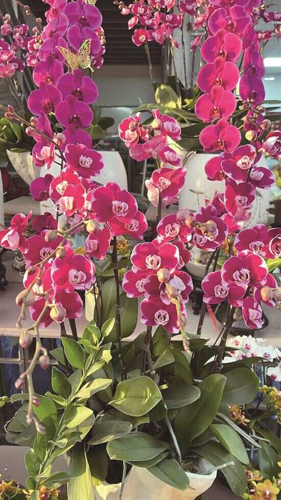 记者走访广州花卉市场发现,新优品种正成为年花新选择 随着春节日益临近,广州各大花卉市场迎来了年花销售旺季。新快报记者从广州市农业农村局了解到,今年,广州的年花市场呈现出量足价实的特点,本地产优质年花供应量超过1800万盆,同比增长20%,除了传统花卉,多种多样的精品花卉纷纷亮相,既带旺了市场,也引领了新的消费潮流,为广大市民带来了新选择。同时,随着保鲜技术和物流效率的提升,广州年花的线上销售占比越来越大。 ■文图:新快报记者 高镛舒 通讯员 穗农宣(除署名外) 走访 “新宠”亮相 成为消费新热点 桃花、蝴蝶兰、年桔……广州市各区花街市集、种植基地热闹非凡,红的、黄的、粉的等各色年花争奇斗艳,年味儿与花味儿交织。 连日来,新快报记者走访多地发现,今年的广州年花市场涌现出哈根达斯蝴蝶兰、空气凤梨等许多精品花卉,因其独特的魅力和美好的寓意,满足了市民个性化审美需求,成为新的消费热点。 空气凤梨 空气凤梨观赏性极佳,不仅形态各异、颜色鲜艳,还能开出美丽的花朵,适合放在阳台、窗台等处栽培观赏。据商户介绍,“它很好养活,不需要土壤,只要有空气它就能存活。” 龙兰蝴蝶兰 作为蝴蝶兰明星的龙兰蝴蝶兰(上大图),以其巨大的花朵和丰富的花量格外引人注目,它的花序如长龙般壮观,花朵直径可达10厘米以上,单朵花甚至能比手机还大,这使得龙兰蝴蝶兰在视觉上极具冲击力。据介绍,特长龙兰选用7年以上苗龄的特级红花,全程控温控湿,培育时间超长,管理技术要求也极高。 蟠龙桔 蟠龙桔由盆桔造景手艺传承人经过3-5年的加工造型,用心栽种培育,蟠龙桔果实密集、枝干造型神似中国的蟠龙飞天之姿,寓意“龙腾四海”。 哈根达斯蝴蝶兰 哈根达斯蝴蝶兰的花朵形态独特,花朵周边通常有一圈明显的黑红色放射线,这些线条从花朵中心向外辐射,使得花朵看起来更加立体和动感,花朵上还散布着许多斑点,与放射线相互映衬,使得花朵的色彩更加丰富和多变。 闪烁蝴蝶兰 闪烁蝴蝶兰是一种珍稀而独特的品种,名称源于其花朵上仿佛带有微光闪烁的斑纹或色彩变化,给人一种梦幻般的视觉效果。 观察 线上线下融合 文旅结合趋势明显 广州市花卉行业协会负责人向记者透露了广州年宵花消费的四大变化。 首先,消费趋向多样化,市场对国内外新优品种、小型化、应用场景多样的花卉需求旺盛,消费者追求个性化设计,注重传统文化与现代元素的融合。 其次,年宵花消费呈现常态化,得益于设施农业和智慧农业的发展,常年开花的品种增多。 此外,线上各新电商平台、传统电商和社区电商纷纷积极加入花卉销售行列,为适应线上销售,年花生产商逐步将产品调整为方便物流运输的品种和规格。 同时,消费者对年宵花的品质要求越来越高,性价比高、质量好的花卉产品成为年宵花的消费主流,消费者更倾向于购买设计新颖、寓意吉祥、株型健康饱满的花卉产品。 数说 今年本地年花产量增两成 新快报记者从市农业农村局获悉,广州市制定印发《广州市花卉产业高质量发展三年行动方案(2024—2026年)》(下称“方案”),强龙头、延链条、兴业态、树品牌,持续推动花卉产业做大做强。新增建设先进花卉温室大棚超过50万平方米,花卉产量明显增长,今年本地产优质年花供应量超过1800万盆,同比增长20%。 “通过调研分析年花消费数据,我们发现水仙、红掌、百合、剑兰、银柳、桃花、冬青、年桔、蝴蝶兰等十种花卉最受广州市民欢迎,而且随着人们对美好生活的需求日益增长,花卉的家庭消费和礼品花卉销售占比稳步上升,线上销售额也持续增长,花卉品质和品种都有质的提升。” 此前,广州发布了全市8个花卉主产区的162家年宵花种植户的市场信息,仅主产区增城,每天就有上千台花卉车,发往全国各地。岭南花卉市场透露,市场每日的鲜切花能卖出二三十万扎,市场年交易额超过了20亿元。 广州市花卉行业协会负责人透露,今年随着方案的深入实施,广州花卉产业将进一步聚焦花卉种业振兴、生产做优、市场做大、服务升级、花文旅融合等关键环节,全面提升广州花卉产业的竞争力和影响力。未来广州将有更多自主研发的花卉品种,更优质的花卉生产设施和技术,年花会一年比一年新颖丰富。