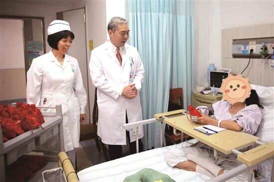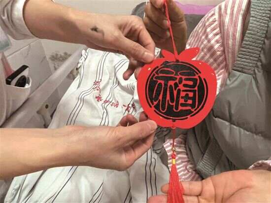 ■中山三院心血管内科主任钱孝贤和护士长李清在节前守护留在病房过春节的患者,送上新春福袋。 |