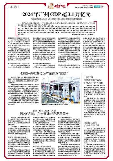 市统计局表示经济运行总体平稳,市场需求有待继续提振 1月27日,广州市统计局发布2024年广州经济运行情况。根据广东省地区生产总值(GDP)统一核算结果,2024年,广州市地区生产总值31032.50亿元,按不变价格计算,同比增长2.1%。 广州市统计局表示,总的来看,2024年,广州经济运行总体平稳,经济在阶段性承压中蕴含着结构优化调整、新兴动能孕育等积极变化。但也要看到,当前广州仍处在新旧动能接续转换的关键期,外部环境更加错综复杂,市场需求有待继续提振,传统支柱产业仍面临转型压力,经济回升向好基础还有待加力巩固。下阶段,要以科技创新引领新质生产力发展,加快现代化产业体系建设,全力壮大新兴动能,不断扩大有效投资,持续用好用足各项存量政策和增量政策,更大程度激发市场活力和内生动力,进一步巩固和增强经济回升向好态势。 ■新快报记者 许婉婕 通讯员 穗统宣 城镇居民人均可支配收入83436元 2024年,广州城镇居民人均可支配收入83436元,同比增长3.6%;农村居民人均可支配收入40914元,同比增长6.0%。城乡居民人均收入比值为2.04,比2023年缩小0.05。 财政支出优先保障民生,全市民生领域的支出占一般公共预算支出比重超七成,其中住房保障支出增长7.8%;重点公共服务、公用事业配套设施建设扎实推进,电力热力燃气及水生产和供应业、教育、水利环境和公共设施管理业投资分别增长34.7%、33.6%和5.0%。 社会消费品零售总额11055.77亿元 2024年,全市社会消费品零售总额11055.77亿元,同比微增0.03%。限额以上批发和零售业中,占比较大的汽车、石油及制品类消费仍然低迷,同比分别下降15.3%和6.5%;基本生活类消费增势较好,粮油食品类、日用品类、中西药品类商品零售额分别增长9.0%、5.3%和5.2%;时尚休闲消费活力焕发,化妆品类、体育娱乐用品类商品零售额分别增长13.8%和13.1%。 在以旧换新政策实施带动下,家居家装家电市场潜力激发,家具类、建筑及装潢材料类、家用电器和音像器材类商品零售额分别增长55.4%、10.9%和4.5%,增速比前三季度分别大幅提升59.8个、34.0个及8.1个百分点。 都市消费品制造增长势头较快 2024年,全市规模以上工业增加值同比下降3.0%。支柱产业中,仍处于动能转换深度调整期的汽车制造业增加值同比下降18.2%;电子产品制造业增长4.8%,其中已形成较强规模效应的超高清视频及新型显示产业增长7.5%;石油化工制造业增长5.2%,增速比前三季度提升2.7个百分点,其中全域布局、全链条发展的化妆品产业实现增加值增长47.4%。新动能加速蓄势聚力,航空航天器及设备制造业增长16.3%,其中无人机产量增长2.9倍。 此外,在消费品以旧换新政策带动下,都市消费品制造保持较快增长势头,家用电冰箱、冷柜、电热烘烤器具、房间空气清洁装置、吸尘器等产品产量均保持两位数增长。 互联网、软件和信息技术服务业增7.3% 1-11月(错月数据),全市规模以上服务业实现营业收入同比增长7.6%。重点行业中,互联网、软件和信息技术服务业稳中向好,增长7.3%,比1-8月提高0.4个百分点。租赁和商务服务业延续快速增长态势,增长9.4%,其中在各类大型展会接连举办的带动下,会议展览及相关服务业增长5.0%。演出市场带动文化艺术业营业收入快速增长27.5%;旅游消费需求持续释放,旅行社及相关服务、旅客票务代理营业收入分别增长10.8%和26.4%。 此外,2024年,全市完成固定资产投资同比增长0.2%,扣除房地产开发投资后,建设改造投资增长4.9%。外贸进出口总值11238.38亿元,同比增长3.0%,比前三季度提升2.9个百分点。
