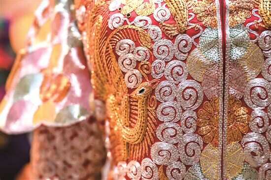 龙凤呈祥、五福临门、祥和瑞气……这些是中华儿女逢年过节、过喜事乐事的美好祝愿。中国人总是十分内敛,许多没有宣之于口的祝福便以龙凤、祥云、石榴花等图案一针一线绣在了服装之上,通过广东省第八批省级非物质文化遗产钉金绣裙褂制作技艺制作的婚嫁礼服,寄托着美好祝福,而后又不断推陈出新,成为时尚秀款和新年服饰。 ■出品:冯树盛 李青 ■策划:新快报记者 陈琦钿 张小奋 ■统筹:新快报记者 邓毅富 ■采写:新快报记者 林翠珍 1 钉金绣手作梦中嫁衣 预订单最远在20年后 钉金绣裙褂制作技艺是运用金银线绣法手工制作婚嫁裙褂的技艺,属于粤绣的一种独特绣法,包括钉金绣和裙褂制作两部分,共16道工序,钉金绣是其中的核心技艺,以金银线为主,铺或叠在真丝红色绸缎上,后用不同色彩的绣线,把金银线钉牢,通过这些不同色彩的绣线来表现物象的色彩、明暗及其特点。 钉金绣裙褂起源于清朝,又名龙凤裙褂、龙凤褂等,是中国一种传统习俗的婚嫁礼服,该技艺在广州流传600多年,为传统习俗及工艺技术的传承赋予了独特的文化价值及风格魅力,是广州地区传统婚嫁民俗活的见证。 钉金绣裙褂制作技艺非遗传承人唐志茹是土生土长的花都人,她5岁开始学习刺绣,12岁便能独自一人完成裙褂制作,今年已经是钉金绣的第四十个年头,钉金绣针法复杂又丰富,有平绣、垫绣等7类60多针,裙褂按刺绣密度可分为小五福、中五福、大五福、褂后、褂皇等,其精致程度令人惊叹,已经成为许多人的梦中嫁衣。 钉金绣裙褂寓意吉祥美好,蕴含着长辈对晚辈婚姻及未来生活的美好祝福,2002年,唐志茹和丈夫邓启荣举办婚礼时便身穿妈妈为她准备的钉金绣褂袍,富丽堂皇,光彩夺目,一针一线都是家人的祝福。“每一套裙褂都有独特的意义,裙褂上的龙与凤代表着‘龙凤呈祥’,在粤语里便是‘龙凤情长’,蝙蝠则代表着福气。”唐志茹介绍,花鸟虫鱼各有美好寓意,顾客们可以选择定制,据透露,目前有许多2到5年后的裙褂订单,而最长远的,是一位母亲为女儿准备的二十年后的订单。 2 传统与时尚相融 非遗裙褂“活起来” 钉金绣始终坚持纯手工制作,现在能绣会绣的大多是老师傅,而非遗技艺传承需要更多新鲜血液。在唐志茹看来,只要让大家看得见钉金绣的价值,这项非遗就能传承下去。“小时候接触钉金绣是出于兴趣,后来作为谋生的手段,而现在,要兼顾市场化与非遗宣传,感觉更多了几分社会责任。”唐志茹说。 为了让钉金绣技艺更好地传承下去,一方面,唐志茹和丈夫积极开门收徒培养传承人,并走进社区、学校、文化馆等开班授课,希望能有更多人认识、喜爱钉金绣传统工艺,唐志茹创办的小茹裙褂设计室也已经成为“花都非遗”教育基地。 另一方面,唐志茹也热衷于与非遗传承人、设计师等合作,不断推出时尚秀款,还开发出一系列鞋类、装饰类等钉金绣产品,和苗族刺绣、布依族土布等进行艺术融合,让传统“非遗”以时尚亮丽的方式走进大家的视野。此外,“非遗+乡村振兴”将传统手工艺和广阔市场密切对接,还成为乡村振兴工作的重要抓手,从2003年开始,通过提供钉金绣裙褂制作技艺培训,帮扶了超过20000人次山区绣娘上岗就业并改善生活。 3 “新春战袍”受追捧 非遗走进寻常百姓家 唐志茹从不囿于传统二字的限制,她敢于创新,对刺绣图案、裙褂设计等进行创新,让这份传统技艺走出婚嫁场景、走出博物馆,走上广东时装周舞台,也走进寻常百姓家。唐志茹曾获20届广东十佳服装设计师,是全国首位获得此称号的非遗传承人。 近年来,新中式“新春战袍”大受追捧,大家偏爱传统服饰来满足新年的仪式感,唐志茹也收到了不少新年服装的订单。与传统裙褂不同,经过改良设计后的裙褂更符合日常,每一件都出自绣娘手工制作,还可以根据喜好进行定制,有着花开富贵、龙凤呈祥的美好寓意。 蛇年至,迎新春。近两个月,唐志茹一直在琢磨蛇年主题系列服装。“霞蔚之中蛟龙现,我希望大家看到的时候就有着期待蛇年的感觉,哪怕过了蛇年,也会让人一瞬间想起这一年的美好。”唐志茹始终希望自己的作品能够从经典中走出,让大家既能看到传统,也能看到时尚。唐志茹正在认真设计稿件和制作蛇鳞,并精心挑选面料,她希望钉金绣走进人们的心中。 唐志茹的小茹裙褂设计室新店开业后,不少周边居民慕名而来。“我知道这是我们花都的非遗,但只能在网上看到这么华丽精美的衣服,现在工作室开在身边,以后我也要来定做一件。”走进店里的顾客,既有特意找来的,也有被店内裙褂吸引而来的,他们无不惊叹于钉金绣的传统华美和唐志茹的精巧技艺。 4 科技助力“活态传承” 丰富活动打造非遗年 匠心之醇,器物之美。非遗不仅是博物馆里的记忆,更是一种“看得见、摸得着”的“活”文化。为此,花都区不遗余力,以丰富多彩的活动和线上线下联动让人们感受非遗魅力,记住非遗。 近年来,花都区为钉金绣裙褂制作技艺提供各类展示平台,如依托“文化和自然遗产日”“花漾花都·文化进万家”等公益惠民文化活动,搭建非遗展示平台,并助力其走上T台、综艺活动等,扩大知名度。“钉金绣进行原汁原味的呈现展示已不能满足新时代人民群众对传统文化的追求,如何破壁出圈打造品牌刻不容缓。”花都区相关负责人表示,在注重非遗传承的同时,要加大宣传力度,提