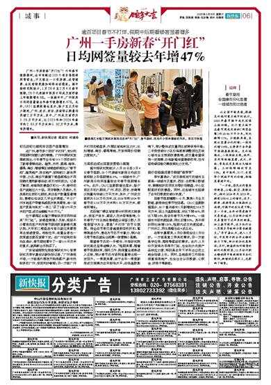 广州一手房新春“开门红” 日均网签量较去年增47%