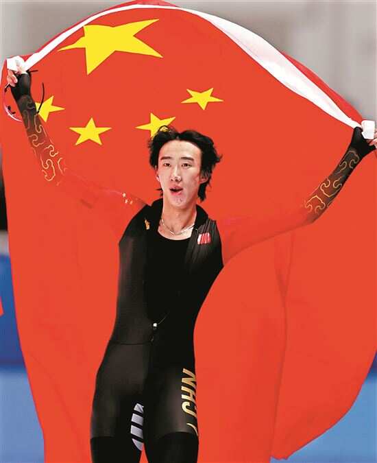 ■速度滑冰男子5000米比赛中,中国选手吴宇获得冠军。 |
