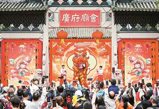 羊城使者带你逛非遗,杨箕古村巡游好墟撼 2月12日,2025广府庙会盛大开幕。忠佑广场开幕展演广东醒狮、羊城使者、五仙献穗、粤剧等文艺演出轮番登场,尽显广府文化底蕴与越秀特色,给民众带来一场“最广府”的文化盛宴;梅花村街“杨箕北帝信俗”非遗活动场面盛大,十八个巡游方阵演绎“古韵新风共欢腾”的祠堂文化大戏;国潮非遗市集凸显蛇年主题,通过科技手段赋能,打造文商旅融合场景,带领群众畅享非遗购、探访非遗味、共赴非遗游。 ■采写:新快报记者 邓毅富 ■摄影:新快报记者 邓迪 郭思杰 古村巡游 锣鼓喧天场面墟撼 上午10点,主会场开幕展演燃起。舞台上,广府文化推广大使张弛扮演羊城使者,以粤语诵读带领观众共赏元宵佳会,见识广府盛景;梅州市民间文艺家协会、梅州市大埔县茶阳镇花环龙队则带来花环龙表演《祥龙献瑞》吸引众多目光。“花环龙”已经有两百余年历史,是大埔县的省级非物质文化遗产,由一青一红两条龙围绕龙珠展开激烈争夺,通过彩带的飘扬和龙身的舞动,展现出龙的灵动与活力。越秀区文化广电旅游体育局副局长何愿飞说,“头戴镂金莲花冠,着碧罗圆领袍的羊城使者这个新角色会带大家逛庙会,吃美食、玩非遗,当好城市的欢乐使者。” 梅花村街分会场祠堂庙会也同样热闹非凡。本次活动以“幸福杨箕·非遗拾光”为主题,分为民俗巡游、曲艺表演、龙狮汇演三大篇章,吸引了千余名村民参与展演。记者看到,巡游队伍浩浩荡荡,沿途锣鼓喧天,观众如潮,场面墟撼。尤为引人注目的是“小龙狮传承方阵”,五十名少年以坚定的步伐舞动非遗龙狮,赢得了观众的阵阵喝彩。而“好家风方阵”中,祖孙三代身着汉服,展现了孝亲睦邻的文明新风,成为了镜头下的焦点。 国潮市集 邀你体验潮玩非遗 城隍庙忠佑广场、广州非遗街区(北京路)等串珠成链,推出“非遗+市集+展览+打卡+体验”融合模式,16个非遗代表性项目传承人通过“直播带货+线下体验”双线互动的形式,推动非遗与经济融合。 新快报记者看到,蛇年主题非遗文创亮点频现,市集以广式红木宫灯系列文创营造节日氛围,辅以“花城好巳,潮游广府”蛇年主题装置,吸引市民沉浸式打卡。通草画“灵蛇出动”系列利用通脱木芯的特性,切割拼凑可爱蛇形,吸引了不少大小朋友围观与购买;针灸(董氏奇穴针法)推出养生香囊福袋,将中医智慧融入年俗;广彩大师许恩福使用DeepSeek创作“蛇年如意至”作品,传统画工纹样与智能诗句相映成趣。更引人注目的是广州榄雕与年轻设计师合作开发的“灵蛇献宝”,以浮雕技法将灵蛇盘绕元宝的意象刻于榄核,寓意智慧与财富的生生不息。 广州非遗街区(北京路)举办“美好循环 生生不息”非遗特展,通过春节(行花街)、岭南押花、广州剪纸、太极拳等10项非遗,展现自然律动、纹饰吉祥与新春叙事的深层联结。 “今年的庙会有三大特点:一是回到原点,不仅是地理上,而且是文化上的,讲述更多的羊城历史故事;二是打开视野,扩展到不同的地域,将地域文化更具体地呈现出来;三是在非遗文创上,更直接地把文商旅结合起来展示推广。” ——越秀区文化广电旅游体育局局长杨卫国