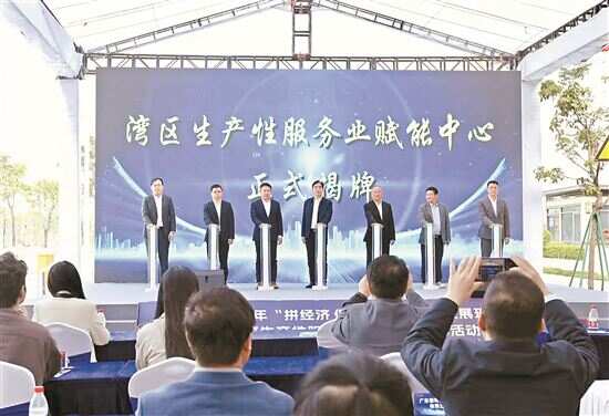 ■现场举行湾区生产性服务业赋能中心揭牌仪式。 新快报记者 龚吉林/摄 |