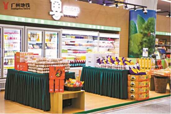 ▲广州地铁在城际番禺站、地铁磨碟沙站等12个枢纽站点开设线下“流动百千万 地铁优鲜购”店铺。 |