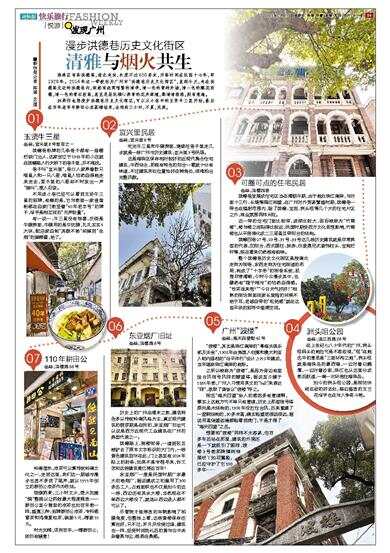 海珠区有条洪德路,南北走向,长度不过600多米,开路时间在民国十七年,即1928年。2014年这一带被划为广州市“洪德巷历史文化街区”,直到今天,走在洪德路左近的洪德巷内,依然有远离喧繁的清净,清一色的青砖外墙,清一色的雕花雨棚,清一色的青石板路,甚至是居民精心养育的花卉绿植,都清清雅雅,别有意趣。 如果你也想漫步洪德巷历史文化街区,可以从小巷中的玉贤牛三星开始,最后在百年老字号耕田公凉茶铺结束,全程约三小时,不累,完美。 ■新快报记者 陈斌 文/图 01 玉贤牛三星 坐标:宜兴里8号首层之一 洪德巷标牌的几条巷子都有一扇栅栏铁门出入,这家创立于1988年的小店就在洪德路人行天桥下的巷子里,并不难找。 巷子叫“宜兴里”,巷口人家养着数只喵星人和一只八哥,喵星人怡然自得地走来走去,笼子里的八哥却不时发出一声“猫叫”,惹人忍俊。 不用进小巷已经可以看到玉贤牛三星的招牌,有趣的是,它与前面一家鱼蛋粉都在自家门前竖着“40年老字号”的牌子,似乎是相互间的“无声较量”。 有一说一,牛三星没有惊喜,反倒是牛腩捞面,牛腩用的是牛坑腩,扎扎实实5大块,配店家自制“其貌不扬”却辣到“生烟”的辣椒酱,绝了。 02 宜兴里民居 坐标:宜兴里9号 吃完牛三星和牛腩捞面,继续往巷子里走几步就是一栋广州市历史建筑:宜兴里9号民居。 这是海珠区保存相对较好的近现代集合住宅建筑,中西结合,那极有特色的阳台一看就十分有味道,不过建筑所处位置恰好在转角处,很难拍出完整风貌。 03 可圈可点的住宅民居 坐标:洪德四巷 洪德巷发展成住宅区当在清朝中期,由于地处珠江南岸,与对面十三行、长堤等隔江相望,在广州对外贸易繁盛时期,洪德巷一带也在辐射范围内,除了洪德、宝恕、洲头咀等几个大的住宅片区之外,商业氛围同样兴旺。 这一带的住宅门面比较窄,进深比较大,因而被称为“竹筒楼”,楼与楼之间贴得比较近,民国时期受西方文化思想影响,竹筒楼也从平房演化成二三层高且带阳台的结构。 洪德四巷27号、29号、31号、33号这几栋历史建筑就是非常典型的代表,凹阳台、西式圆柱、拱券、仿爱奥尼式装饰柱头、宝瓶栏杆等,现在看来仍然极有韵味。 整个洪德巷历史文化街区是按南北走向为街巷、东西走向为住宅街道的布局,构成了“十字形”的街巷系统,肌理非常清晰,今时今日漫步其中,也骤然有“隐于闹市”的怡然自得感。“饮茶返来啦?”“今日天气好好!”相熟的街坊照面间家长里短的问候不绝于耳,老城自带的“松弛感”就在这些平淡的招呼中溢满空间。 04 洲头咀公园 坐标:滨江西路26号 在上世纪七八十年代的广州,洲头咀码头的地位可是不容忽视,“咀”在地名中的意思是“三面环沟之地”,洲头咀就是海珠岛的最西端,一边对着白鹅潭,一边对着沙面,珠江也从这里分成前后航道,一南一北环抱住海珠岛。 如今的洲头咀公园,是街坊休闲运动的好去处,路边盛放的玉兰花似乎也在与人争奇斗艳。 05 广州“波楼” 坐标:海天四望街42号 “波楼”,其实是珠江南岸的“粤海关俱乐部及关舍”,1908年由美国人伯捷和澳大利亚人帕内搭档的“治平洋行”设计,1910年建成,当年堪称珠江南岸的地标。 之所以被称为“波楼”,是因为旁边有座挂台风信号风球的瞭望塔,据说至少建于1885年前,广州人习惯用英文的“ball”来表达“球”,故取了谐音以“波楼”呼之。 街名“海天四望”给人的感觉多有意境啊,事实上这地方可不单只有意境,历史上那座信号塔原先是木结构的,1908年没扛住台风,后来重建了一座钢结构的,30多米高,确实能望到很远很远,据说用高倍望远镜都能看到虎门,于是才得了“海天四望”之名。 想要拍“波楼”同样不太容易,但百多年后站在那里,建筑的外观还是一下就吸引了眼球,波楼3号前那株樟树伸展枝丫如羽翼般,已经守护了它100多年…… 06 东亚烟厂旧址 坐标:洪德路8号 历史上的广州在清末之前,建筑特色多以传统岭南风格为主,真正现代建筑的萌芽期是在民初,东亚烟厂旧址可以说是西方近现代工业建筑在广州的典型代表之一。 洪德路上,骑楼街旁,一道斑驳且被铲去了原本文字标识的大门内,一栋黄色建筑驻守在此,门上甚至有2024年贴上的封条,如果不是专程寻来,你又怎知这栋建筑竟已将近百年? 东亚烟厂一度是民国时期广东最大的卷烟厂,据说建成之初雇用了300多名工人,占地面积也不仅是如今的这一栋,西边还有其余大楼,当然现在不单西边大楼没了,就连从西边进入都不可以了。 尽管院子里停放的车辆影响了拍摄角度,但整体上看,这栋黄楼保存还算完好,只不过,岁月并没饶过谁,建筑也一样,经受时间洗礼后的黄与白中夹杂着黑与尘,极具沧桑感。 07 110年耕田公 坐标:洪德路56号 岭南湿热,凉茶可以算传统岭南文化之一,走到这里,我们这一期城市漫步也差不多到了尾声,就以1915年创立的耕田公凉茶作为收结。 烧煤煎煮,三小时文火,熄火加盖“焗”整晚以让药效最大程度释放——耕田公至今售卖的凉茶也如百年前一样,盛惠三种:招牌耕田公凉茶、专科感冒茶和鸡骨夏枯茶,碗装5元,樽装10元。 时光如梭,须臾百年,一樽耕田公,依旧有暖意!