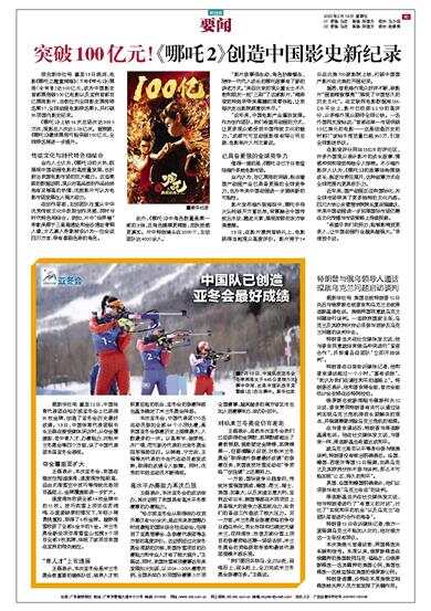 突破100亿元!《哪吒2》创造中国影史新纪录
