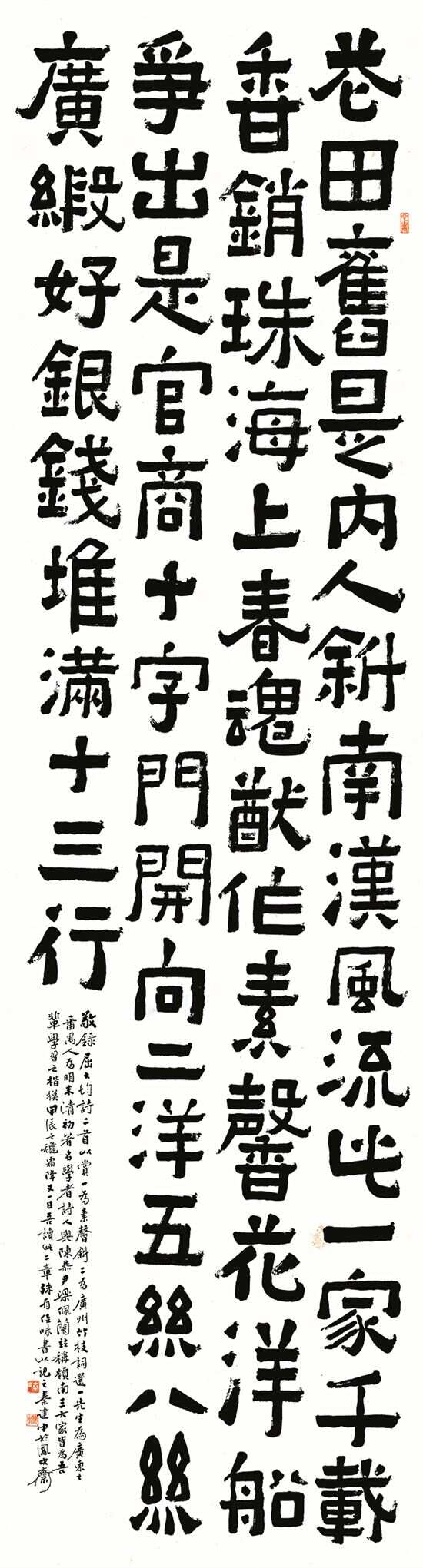 “气脉雄如此,由来是广州。”广州千年文脉兴盛,是岭南文化中心地,也是历代文人墨客诗词留墨添香的所在地。自汉杨孚,至唐宋张九龄、苏轼,明清汤显祖、屈大均等,众多诗家都曾在岭南大地挥写优美诗句,汇聚成岭南文化中的灿烂星河,积淀成广州这座古城的文化根脉。 日前,由广州市委宣传部指导,广州市文联、广州市书协共同主办的“气脉雄如此——广州诗词主题书法展”在广州人民艺术中心展出。作品用书法艺术演绎不朽诗篇,全面展现广州馥郁的诗词氛围,助力广州“诗词之都”建设工作。 此次书法展156幅展品涵盖书法名家与书坛新秀的佳作,五体齐备,书风雅正、气象恢宏、气韵深厚、风格多元。参展者融合书体与诗词的艺术创造与文化价值,探索中华美学与当代审美形式与观念的创新,进一步挖掘广州作为“诗词之都”的深刻内涵和文化积淀,号召广大书法家创作更多体现中国特色、中国风格、中国气派的翰墨诗词,为人民书写、为时代挥毫,赓续中华文化根脉,讲好广州故事。为此,新快报收藏周刊专访广州市书法家协会副主席秦建中,深入剖析广州乃至岭南书法的特色与现状。 1 “近年来广东最大气、最传统、最有说服力的一个书法展” 收藏周刊:这次展览的作品,尺幅普遍比较大,尤其是第一部分,视觉效果尤其不一样。 秦建中:我认为,这是近年来广东最大气、最传统、最有说服力的一个书法展。从内容的角度看,岭南的古诗词基本出自当时从中原地方贬谪过来的文人士大夫,从他们所写的诗词可以看出,岭南的山水风情,特别是珠江潮影和云山秀色让他们有了全新的审美感受,所表达的境界都比较大气,有比较开阔的情怀。从书写幅度和笔墨风格看,源于对传统的继承和受碑学思想的影响,也同样大气,整体都有比较雄浑的气息。这次展览的整体尺幅都比较大,尤其有一大部分是丈二幅的,如此大的尺幅,如果缺乏浑厚的笔墨支撑,则不耐看。书法的尺寸过大或者过小都很难写,如果尺寸太大,控笔不好就容易涨墨而入俗,笔墨浮在纸上,显得单薄,这就需要作者有扎实的传统功夫,去认真思考用笔的方法。 收藏周刊:能否具体点评几张作品? 秦建中:梁晓庄的《雍平<羊城百咏·广州塔>》那张作品,就很好地诠释了入木三分的笔墨感受。他用的是石鼓的线条,像直接刻进去的感觉,很浑厚。又比如麦录的《唐·张九龄<与王六履震广州津亭晓望>》,他主要取法米元章,本来米元章的书体要想写大很难,但麦录在写的过程又掺入了一些《石门颂》类的碑学用笔,所以,凸显了大气的一面,也说明了有他个人的思考,同样取法米元章的还有林振武的《唐·刘言史<广州王园寺伏日即事寄北中亲友>》,他的感觉又不一样。十三届国展作者仇琪和广州老书家何启冠先生同样取法魏碑《石门铭》,仇琪的作品充满青春躁动的气息,何启冠的则肃穆安静,让人有完全不一样的审美感受。青年书家陈泽雄的行书则加了于右任的用笔,轻松灵动,极有文气。年过九十的李家培老先生的对联,特别显得沉重大气,有定海神针的感觉。 2 “年纪最大的有90多岁,年轻的则有90后” 收藏周刊:通过展览,我们可以读到岭南书法怎样的特点? 秦建中:通过这个展览,我们可以看到很典型的岭南书法地域特色。无论是岭南文化融合的多样性,还是书法传统和人文精神,都很好地融汇在一起,参展书法家以其深厚的传统书法功底,较好地展现了岭南书法别具一格的一面,这与很多大型书法展千篇一律的“展览体”拉开了很大的距离。艺术最忌讳的是千篇一律,而这一次呈现出的恰恰就是各有不同,每个人都在坚守自我的探索方向,无论是地域特色,还是个人特色都比较强烈,还有一个传统精神,这三点都很好地融合在展览之中。 这次参展的作者,年纪最大的有90多岁,年轻的则有90后,但主要的年龄段在35到65岁之间,这个群体精力旺盛,创作经验丰富。在取法上,既有怀素、张旭、王羲之、王献之、颜真卿、赵孟頫、董其昌、王铎、何绍基等比较多见的书家,也有近现代岭南的书法名家李曲斋、吴子复、秦萼生等,风格多样,面貌不同。 特别是这次写行草的作者,也比较注重篆隶的修为,他们的行草书会有雄强的一面。可以说,通过这些作品,能领略到岭南书法精神的核心所在。大多数作者都没有被世俗时风所左右,更没有追求“展览体”的风气。 收藏周刊:您提到对篆隶的注重,是否可以归结到岭南书法中对碑学的推崇? 秦建中:是的,在岭南书法中的一个主要特点就是碑学实践。我一直认为,岭南书法在碑学实践上做得最出彩,这既有阮元、包世臣、康有为等人碑学思想的影响,更重要的是岭南后学对这种书学精神的继承和实践。 3 “岭南书风不仅仅是碑学之风,还有雅致秀美的一面” 收藏周刊:碑学实践在岭南书法中,有怎样的探索? 秦建中:从乾隆、嘉庆时期开始,为摆脱赵孟頫和董其昌一类书风的影响,碑学流行,人们将兴趣集中到了古文、金文、籀文、篆隶等金石书风上来。阮元、包世臣,伊秉绶、邓石如、刘墉、张裕钊、徐三庚等人是杰出代表,其中阮元、伊秉绶、邓石如对岭南的影响特别大,虽然有的以篆为主,但他们走的依然是建立在碑学基础上的篆书方向。清末民初则有康有为、梁启超、林直勉、简经纶,之后吴子复以及“吴门八大弟子”(张奔云、关晓峰、何作朋、李伟、李家培、陈作樑、林少