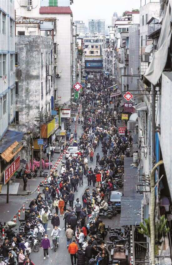 ■广州海珠区制衣工厂迎来招工高峰期,大塘村招工一条街人来人往。