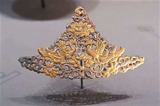 ■西部机场博物馆展出的唐代文物鎏金银钗。新华社发 |