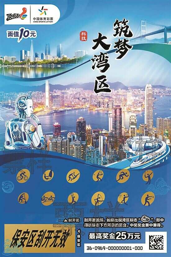 展现粤港澳大湾区建设发展成果,中国体育彩票推出新品 新快报讯 记者陆妍思 通讯员粤体彩报道 2月27日,“筑梦大湾区”主题即开型体育彩票上市仪式在广东广州举行。广东省体育局副厅级干部雷检军出席仪式并致辞,宣布该主题即开票正式上市销售。 据了解,经财政部批准发行销售的该款彩票围绕粤港澳大湾区“9+2”城市特色,创新设计五大主题票面,展现粤港澳大湾区建设发展成果。该票单张面值10元,最高奖金为25万元。 五大专题诠释湾区特色 作为粤港澳大湾区建设的创新实践,“筑梦大湾区”即开型体育彩票围绕“融合、活力、科技、人文、宜居”五大专题设计,全方位展现大湾区建设成就与独特魅力。 “融合”专题票:以港珠澳大桥、深圳太子湾邮轮母港等地标为核心,凸显大湾区的紧密连接与协同发展; “活力”专题票:融合广州塔、珠海横琴、深圳平安国际金融中心等现代化建筑,搭配篮球、跑步等运动元素,展现湾区开放、年轻的城市氛围; “科技”专题票:融入广深港高铁、智能机器人等代表性元素,体现粤港澳在科技创新领域的前沿突破; “人文”专题票:结合广州花市、佛山祖庙、粤剧、舞狮等岭南文化符号,展现湾区深厚的文化底蕴; “宜居”专题票:选取珠海日月贝、肇庆七星岩、江门开平碉楼等生态景观,展现湾区宜居宜业的优质生活环境。 票面集艺术性与公益性于一体,单票面值10元,最高奖金25万元,奖级设置参考我省经典票种,兼顾购彩体验与湾区宣传效果。 体彩助力区域协同发展 体育彩票作为国家公益彩票,在支持体育事业和社会公益方面发挥着重要作用。近年来,广东体彩围绕“建设负责任、可信赖、高质量发展的国家公益彩票”的总体目标,持续做好彩票销售工作,为粤港澳大湾区建设作出积极贡献。所筹集的公益金已用于多个重大体育项目和基础设施建设,包括第十五届全国运动会筹备工作、全民健身设施完善、竞技体育发展、青少年体育培养等,助力粤港澳大湾区经济文化建设。 此次发行“筑梦大湾区”主题彩票,是广东体育彩票服务国家战略、融入区域发展的主动作为。该票上市后,所筹集到的公益金也将广泛用于全民健身、教育助学等民生领域,助力大湾区绘就更精彩的“融合·创新·共享”新图景。 16000家门店同步发售 “一张彩票,一份爱心;一张彩票,一份快乐”。据介绍,随着“筑梦大湾区”即开票全面上市,广东体彩将以更高标准推进销售服务,持续优化购彩体验,切实履行社会责任。 目前,“筑梦大湾区”主题即开票在全省超1.6万家体彩实体店全面开售,购彩者可前往门店体验新票玩法,有机会赢取最高25万元的现金大奖。