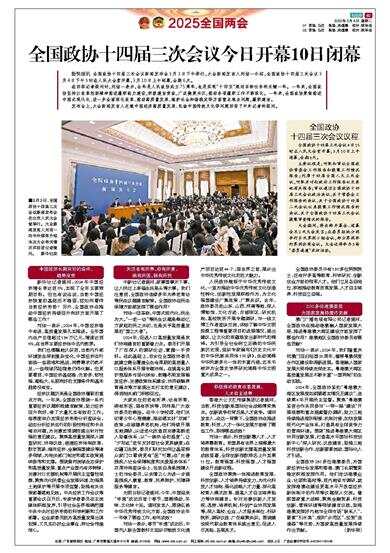 全国政协十四届三次会议今日开幕10日闭幕