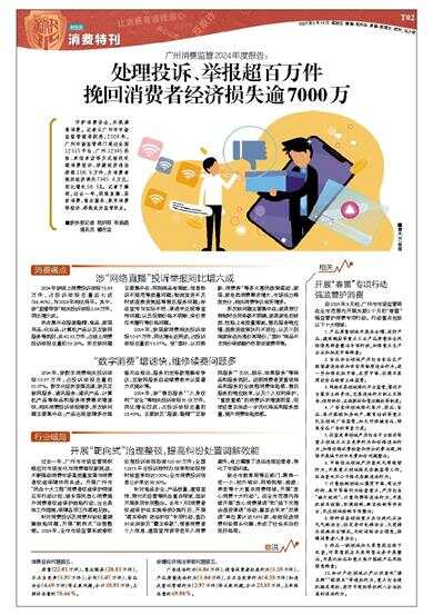 广州消费监管2024年度报告:处理投诉、举报超百万件 挽回消费者经济损失逾7000万