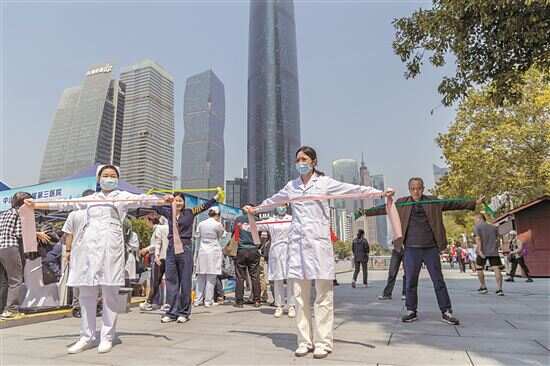 2025年广东省“体重管理年”现场活动在广州举行 3月23日上午,在粤港澳三地共同举办的第十五届全国运动会即将来临之际,以“科学控体重 活力迎全运”为主题的2025年广东省“体重管理年”现场活动在广州花城广场举行。 “管住嘴,迈开腿”是赶走肥胖、找回健康体型的要诀。活动现场,仪器体验、体重管理科普知识宣教、体重管理相关名专家与市民群众面对面交流,不断传递体重管理的正确打开方式。 据广东省卫健委介绍,管理体重,共迎健康是人人受益之举,值得全民参与,今年将大力营建“体重管理”支持性环境,包括2025年底广东体重管理门诊设置率要达到50%,体重管理纳入家庭医生签约服务等。 ■采写:新快报记者 李斯璐 ■摄影:新快报记者 观显锋 广东每3个成人中就有一个人超重 近年来,广东省居民肥胖和超重问题日益突出,已成为重大的公共卫生问题。2023年调查数据显示,广东省每3个成人中就有一个人超重,每6个成人中就有一个人肥胖。 体重异常,特别是超重和肥胖,是导致心脑血管疾病、糖尿病和部分癌症等慢性病的重要危险因素,犹如健康的隐形杀手。 为应对超重肥胖带来的严峻挑战,广东省贯彻落实国家有关部署,广东省卫生健康委等16部门出台《“体重管理年”活动实施方案》。 持续推动医疗机构设置体重管理门诊 广东省卫生健康委党组书记、主任刘利群在活动中表示,全省卫生健康系统已将“体重管理年”活动列入2025年卫生健康系统十大便民惠民举措。“有效管理体重,要点在于‘管住嘴,迈开腿’,接下来,将坚持共建共享,大力营建‘体重管理支持性环境’。” 记者了解到,体重管理支持性环境包括:打造健康主题公园、健康小屋等,推动构建覆盖家庭、单位、社区多层次的健康生活圈。同时,加强科普宣教,持续开展社会体育指导员等“四员”队伍建设,推动“八进”活动,不断提高公众“体重管理”主动意识。 在深化医防融合方面,推动医疗机构设置体重管理门诊,推广中医药适宜技术,力争到2025年底二级及以上综合医疗机构体重管理服务覆盖率达50%,2026年底达80%,为群众提供专业化的健康服务。 此外,聚焦重点人群,广东将加强基层医疗机构体重管理技能培训,将体重管理纳入家庭医生签约服务,提供精准化健康指导,加快形成全民参与、人人受益的良好局面。 倡议成年人每周至少5天中等强度活动 活动现场,2012年伦敦奥运会跳水男子双人三米板冠军罗玉通和广州中医药大学副校长、广东省中医院院长、全国名中医张忠德分别作为运动员代表和医生代表宣读健康体重管理倡议书,开启健康体重新篇。 他们呼吁公众从现在做起,从自己做起,践行健康生活理念,争做健康体重的践行者、传播者和推动者,为建设健康广东贡献积极力量。罗玉通说:“作为运动员代表,呼吁大家坚持规律运动,选择适合的运动方式,成年人每周至少5天中等强度活动,累计150分钟以上。同时保证充足睡眠,培养积极乐观心态,减轻压力和焦虑。” 现场 “太忙没时间运动是最大的谎言” 全国名中医张忠德现场示范碎片化运动 主动体验向往健康、搜罗健康资讯为己所用……周末的花城广场游人如织,但得知活动传递“广东喊你减肥”信号,往来过路的广州市民都主动上前参与活动。现场各大医院减重专科带去多种模型、仪器支起义诊区,13个医疗机构的义诊帐篷前排起长龙。 客家版膳食册子很快被抢完 坐着就能减肥?广东省第二人民医院一款“全身声波垂直振动椅”前排起长队,路过市民都想体验“坐着减肥”的神器。“据说功效是助力减脂、激活骨骼、改善睡眠,要是能这样坐着减肥,那是太好了。”排队等候参与体验的钟先生说。 另一边,中山三院中医科的经络按摩仪也是群众积极参与体验的仪器之一。中山三院中医科副主任针灸专科主任张昆表示:“不少市民都来问如何祛湿减肥,还有人问有没有穴道可以控制食欲。”不问不知道,答案是:“有的。”张医生进而解释,通过贴相关穴位改善人体脾胃功能,比如在前臂前区,腕掌侧远端的“内关穴”,食欲旺盛的人在饭前按压一分钟,胃口就会明显“收敛”:“胃火旺盛的朋友进食总是吃到撑,按压穴位后,吃到五六分饱就达到比较合适的果腹量。” 此外,广东省疾控中心还为广府地区、潮汕地区、客家地区制作了膳食平衡建议册子。“客家版的膳食册子很快被拿完了。可见广州市民比较热衷在减重和饮食之间找平衡。”一位工作人员介绍。 医生现场教用弹力带放松肩颈 临近中午,中山三院减重中心康复医师林海妹手执一条弹力带现场做操,旁观的市民也跟着动起来。这弹力带是康复科办公室常见的小工具。林医生介绍,用身边唾手可得的道具,就可以做“YW字练习,每组十分钟,就能达到背部中下斜方肌的锻炼放松,燃烧卡路里效果,适合日常肩颈不适的上班族。” 据了解,体重管理的核心就是“管住嘴,迈开腿”,也就是“吃动平衡”。不少市民都说“工作太忙了,没时间运动”。广东省中医院院长、全国名中医张忠德听后却说:“说工作太忙没时间运动,是最大的谎言。在家、在办公室,坐久了起来蹲坐、半蹲、举哑铃,甚至练气(即深呼吸然后大口哈一口气)等,都是运动。”他还即场“教两招”,亲自示范,鼓励群众:“只要碎片化地动起来,都是锻炼。” 声音 减肥成功的市民这样说 80后蔡先生,原BMI