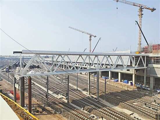 广州白云站大朗客整所已完成吊装的钢梁。 |