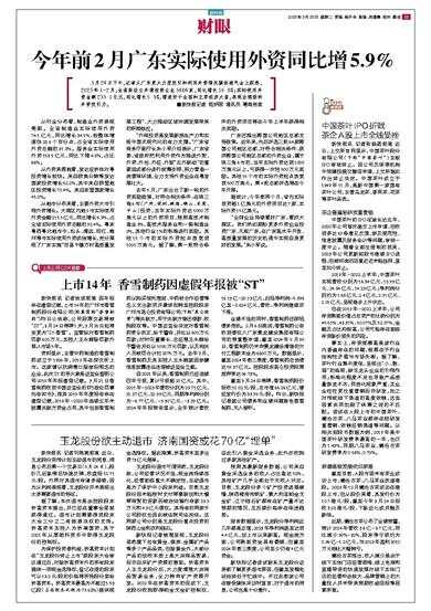 新快报讯 记者涂波报道 因年报存在虚假记载,上市14年的广州市香雪制药股份有限公司(股票简称“香雪制药”)昨日公告称,公司股票交易将被“ST”,3月24日停牌1天,3月25日起将变更为“ST香雪
