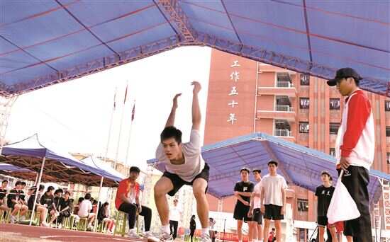 ■今年广州体育中考满分标准与去年相同。图为男子立定跳远。 新快报记者 郭晴/摄(资料图) |