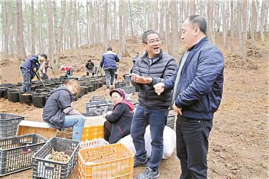 ■长顺县国有林场内,务工村民种下天麻种子。 |