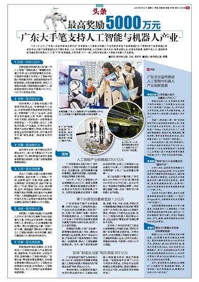 最高奖励5000万元 广东大手笔支持人工智能与机器人产业