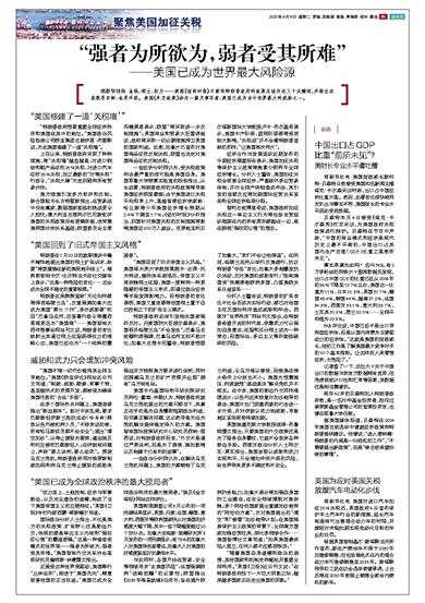 据新华社电 金钱、领土、权力——美国《纽约时报》日前将特朗普政府的政策总结为这三个关键词,并指出这些既是目标、也是手段。美国《外交政策》杂志一篇文章写道:美国已成为当今世界最大的威胁之一。 “美国修建了一道‘关税墙’” “特朗普政府想要重塑全球经济秩序和美国在其中的地位。”美国政治风险咨询公司欧亚集团总裁伊恩·布雷默说,为此美国修建了一道“关税墙”。 上任以来,特朗普政府采取了种种措施,将“关税墙”越垒越高:对进口钢铁和铝产品征收25%关税、对进口汽车征收25%关税,加之最新的“对等关税”行政令,“关税大棒”无差别砸向所有贸易伙伴。 美方措施引发多方批评和反制。联合国秘书长古特雷斯指出,在贸易战中没有赢家,脆弱国家面临的挑战更令人担忧;澳大利亚总理阿尔巴尼斯批评美国的关税政策没有逻辑依据,违背澳美两国伙伴关系基础;欧盟委员会主席冯德莱恩表示,欧盟“将采取进一步反制措施”;英国商业和贸易大臣雷诺兹说,政府将采取一切必要措施捍卫英国的国家利益。此前,加拿大已宣布对美国商品征收反制关税,欧盟也决定对美国商品征收反制关税。 一些经济分析师认为,受关税政策冲击最严重的很可能是美国自身。美国耶鲁大学预算实验室的报告指出,从长远看,特朗普政府的关税政策将导致美国经济明显萎缩;由于美国进口关税平均税率上升,高盛首席经济学家扬·哈丘斯将今年美国经济增长预期从2.4%下调至1.7%;《纽约时报》分析指出,别国针对美国关税的反制措施将影响美国近800万人就业。克罗地亚利贝尔塔斯国际大学教授卢卡·布尔基奇表示,美国中产阶级、蓝领阶层都将受到较大影响,“关税战”并不会像特朗普宣称的那样,“让美国再次伟大”。 经济合作与发展组织近期发布的中期经济展望报告表示,美国加征关税等保护主义政策将拖累今明两年全球经济增长。分析人士警告,美国加征关税会损害全球经济,严重破坏多边贸易体制,并对全球产供链造成冲击,其引发的连锁反应将加剧国际经贸关系紧张和全球经济格局分裂。 智利总统博里奇说,美国政府加征关税这一单边主义行为将包括世贸组织框架在内的所有原则都抛在一边,是在拥抱“强权即公理”的理念。 “美国回到了旧式帝国主义风格” 特朗普在1月20日的就职演讲中毫不掩饰地提出美国的领土扩张诉求,称要“将国旗插在新的美丽地平线上”。瑞典前首相卡尔·比尔特当天在社交媒体上表示:“这是一种危险的言论……这会成为全球不稳定的重要根源。” 特朗普近来频频宣称“无论如何都将得到格陵兰岛”,反复强调加拿大应成为美国“第51个州”,多次威胁要“收回”巴拿马运河,还签署行政令将墨西哥湾更名为“美国湾”……美国智库大西洋理事会网站刊文说,特朗普的言论映射出其通过领土征服获得权力的侵略心态,美国已经沦为“一个纯粹的霸凌者”。 “美国回到了旧式帝国主义风格。”美国塔夫茨大学教授莫妮卡·达菲·托夫特说,殖民体系崩塌后,帝国主义不再依赖领土征服,美国一度转向一种更隐蔽的帝国主义形式,即通过政治经济等手段发挥影响力。而特朗普的言论表明,美国又重返要将他国领土置于自己控制之下的扩张主义模式。 特朗普政府此举引发相关国家强烈反对。丹麦国防大臣波尔森表示,美国吞并格陵兰岛“不会发生”;巴拿马总统穆利诺强调,巴拿马运河主权不容讨论;加拿大总理卡尼警告,特朗普想毁了加拿大,“我们不会让他得逞”。在民间,格陵兰岛民众举行反美游行,抗议特朗普“夺岛”言论;加拿大多地爆发抗议活动,反对美国的威胁言行;“抵制美国货”浪潮席卷欧洲多国,凸显美欧关系日益紧张…… 分析人士警告说,特朗普的扩张言论不论会否成为实际行动,都已对他国主权及国际秩序造成威胁和冲击。西班牙“世界秩序”网站刊文指出,在特朗普希望开启的时代里,依靠武力可以强加自身意志,征服和瓜分领土成为一种常态,而国际法、多边主义等则面临破碎的风险。 威胁和武力只会增加冲突风险 “美国不惜一切代价维持其全球主导地位。”美国《欧亚评论》网站近日刊文写道,“制裁、威胁、勒索、军事干预,甚至殖民式的资源开发,都被视为确保美国优势的‘合法’手段”。 在多个国际热点问题上,美国连续推出“胁迫剧本”。面对中东乱局,要求巴勒斯坦伊斯兰抵抗运动(哈马斯)释放以色列被扣押人员,“不按我说的做,所有哈马斯成员都不会安全”;提出“清空加沙”,以停止援助为要挟,逼迫埃及和约旦接收巴勒斯坦人;在伊朗核问题上,声称“要么谈判,要么动武”。围绕乌克兰危机,特朗普政府用对俄罗斯制裁加码和向乌克兰停止援助的威胁来强迫双方按照美方要求进行谈判,同时还觊觎乌克兰的矿产资源并企图“拥有”乌方核电站。 美国卡内基国际和平研究院研究员阿伦·戴维·米勒认为,特朗普政府就乌克兰危机提出的方案只顾当下,其真正在乎的是为自身攫取短期政治利益,而非真正解决问题,这必然导致无法为危机解决提供稳定持久的方案。美国智库国际政策研究中心研究员西纳·图西说,对特朗普政府而言,“外交不是通过严肃谈判,而是为了表演、施加影响以及构建于己有利的叙事”。 一些政治分析师认为,在解决乌克兰危机问题上,美国的方案牺牲了乌克兰