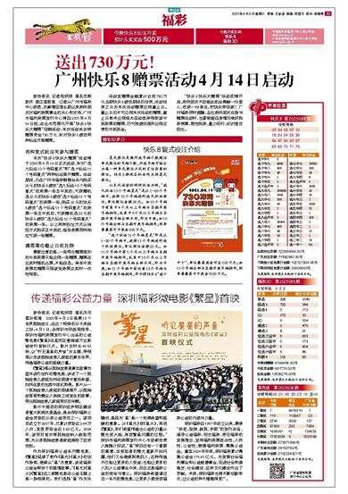 新快报讯 记者陆妍思 通讯员郭新庆 盘芷滢报道 记者从广州市福彩中心获悉,为真情回馈长期以来彩民朋友对福利彩票事业的关心和支持,广州市福利彩票发行中心将自2025年4月14日起,在全市范围内开