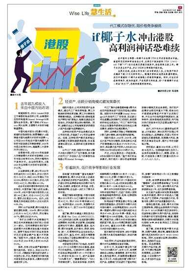 代工模式存隐忧、陷价格竞争漩涡 在中国市占率第一的椰子水品牌IFBH正寻求登陆资本市场。泰国即饮饮料和即食食品公司、总部位于新加坡的IFBH Limited(下称“if”)近日在港交所递交招股书,拟在香港主板上市。椰子水为其主打产品,并以34%市占率领跑中国内地。 业界关注到,这家公司仅有5名专职研发人员,以轻资产的方式撬动了超10亿元的年收入。随着外资和本地竞品数量的增加,定位中高端的if椰子水逐渐陷入价格竞争漩涡。同时,行业还存在标准缺失、添加剂滥用、产品同质化的乱象,若if依赖椰子水这一单品“打天下”,恐难持续高利润神话。 1 去年超九成收入来自中国内地市场 根据招股书,IFBH Limited为创立于泰国的食品饮料公司,由泰国知名饮料制造商General Beverage分拆国际业务而来。旗下拥有if与Innococo两大品牌,主营椰子水饮料与植物基零食。 中国内地市场为if的最大市场。根据灼识咨询报告,按零售额计:if品牌是中国内地椰子水饮料市场第一。公司自2020年起在中国内地椰子水饮料市场连续五年蝉联榜首,2024年市场占有率约34%,超越第二大竞争对手七倍以上。 在香港市场,if自2016年起连续九年蝉联椰子水饮料市场榜首,2024年市场占有率约60%,同样大幅领先于竞争对手。在全球范围内,if是2024年全球椰子水饮料市场的第二大公司。 从业绩表现上看,该公司2024年的收益约为1.58亿美元,折合人民币约11.58亿元,相比2023年增长了约80.32%;净利为0.33亿美元,折合人民币约2.42亿元,同比增长94.12%。 在去年实现年营收净利双双大涨的背后,中国贡献了超九成的业绩。2024年,if在中国内地市场的收入达到1.46亿美元,约合10.69亿元人民币,营收占比高达92.4%。此外,if在香港及其他地区的收入占比分别为4.6%、3%。 同时,分产品来看,椰子水是其主要的营收来源。2024年,椰子水的收入约为11.06亿元人民币,同比增长83.7%,营收占比达95.6%。 “我们认为椰子水的销售在可预见的未来将继续占我们收入的很大一部分。任何消费者对我们的产品或椰子水的需求发生重大负面变化,通常可能会对我们的业务财务状况及经营业绩产生重大不利影响。”招股书中,if提到,椰子水占其2023年及2024年收入的约93.8%及95.6%。 显然,目前if的业绩严重依赖中国内地市场。实际上,早在2024年3月18日,if曾就拟于新加坡交易所上市发布公告,不过,考虑到与中国内地市场紧密的业务联系,if最终决定改道港交所上市。 2 轻资产、依赖分销商模式藏发展隐忧 招股书显示,公司采用轻资产业务模式,通过代工厂商负责制造、第三方物流供货商负责运输、第三方分销商负责销售与配送。这种模式使if拥有高度生产弹性与扩展能力,能够迅速适应市场变化,并快速扩展全球分销网络。同时,该模式也让公司能够将更多资源投入到产品创新与品牌建设中。 这种绝对轻资产的业务模式成为公司的优势,并造就了if公司的业绩神话。但是,这种轻资产模式虽然能让品牌建立初期快速获得发展,但当高速增长期过去,长期则有过度依赖的隐患。 以代工厂为例,招股书中表示if椰子水绝大多数代工厂位于泰国,其中最大的代工厂为创始人名下的泰国饮品制造公司General Beverage。 代工厂集中在泰国意味着if椰子水在任何政策变动下的抗风险能力都较弱。招股书中并未透露General Beverage以外其他代工厂的信息,而这家公司也透露出其依赖代工的担忧,称若原材料供应出现变化,“代工厂商则可能无法以优惠条件获得充足的供应以满足需求,或根本无法满足需求。” 同时,这种模式导致公司销售依赖少数几家分销商,或对经营形成影响。 招股书显示,2023年、2024年,if前五大客户均为分销商,而来自前五大客户的销售额占比高达97.9%与97.6%。其中,来自最大客户的收入占比在2023年和2024年分别达到49.5%和47.0%。 不过,if也注意到这一风险因素。if亦在招股书中提到,“鉴于我们的业务模式,我们很大一部分收益将继续依赖分销商及其业务表现。我们的产品需求出现任何重大下降、现有合约不续期或该等客户不再下达采购订单,不论出于价格和盈利预期变化、竞争条件、财务困难或其他原因,均可能对我们的财务状况及经营业绩产生不利影响。” 此外,对于本次IPO募得资金的用途,if方面表示,将分别用于加强公司的仓配能力,品牌建设,巩固公司的市场地位及渗透程度,拓展澳大利亚、美洲及东南亚的业务,提升公司的创新能力等。 资料显示,截至2024年底,公司只有46名员工。注册地新加坡3名员工;业务所在地泰国43人,销售、研发、仓配、行政财务人事员工数量分别为20人、5人、6人、12人。 3 标准缺失、低价竞争等影响行业发展 因有着“天然低糖”“富含电解质”的健康标签,椰子水在市场上迅速走红,并逐渐成为茶饮产品的原料。目前大部分茶饮品牌都有相关的椰子系列产品,如喜茶、奈雪的茶、茶百道、古茗、瑞幸咖啡等,这也进一步扩大了椰子水的市场。 根据艾瑞咨询的数据,中国市场规模从2018年的5.13亿元飙升至2022年的30亿元,预计2025年将突破50亿元。有资料显示,2023年,我国椰子水品牌只有32个,到了2025年已经超过50个。 据了解,椰子水赛道入局的选手众多,既有Vita Coco、if、INNOCOCO、UFC这样的进口品牌,也包括国内椰饮品牌椰树、你好椰、欢乐家等,还有新锐品牌如可可满分、蔻蔻椰、蔻泉、佳木源、椰子知道等,此外春光、菲诺、娃哈哈