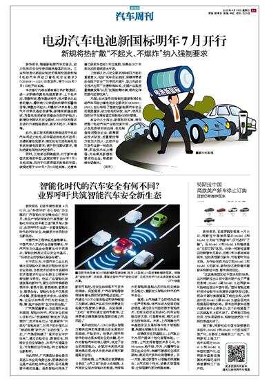 新规将热扩散“不起火、不爆炸”纳入强制要求 新快报讯 随着新能源汽车的普及,动力电池的安全性受到越来越高的关注。工业和信息化部组织制定的强制性国家标准《电动汽车用动力蓄电池安全要求》(GB