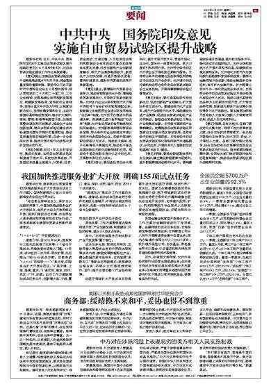中共中央 国务院印发意见 实施自由贸易试验区提升战略