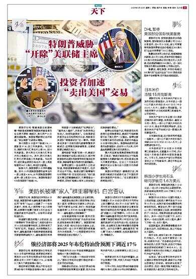 据新华社电 随着美国总统唐纳德·特朗普威胁解职美国联邦储备委员会主席杰罗姆·鲍威尔,美元资产21日遭加速抛售。美国彭博新闻社当天报道,“卖出美国”交易势头增强。 美元指数21日盘中下跌超1