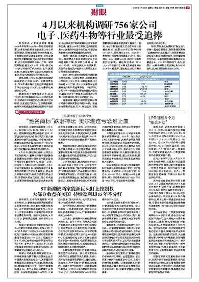 4月以来机构调研756家公司 电子、医药生物等行业最受追捧