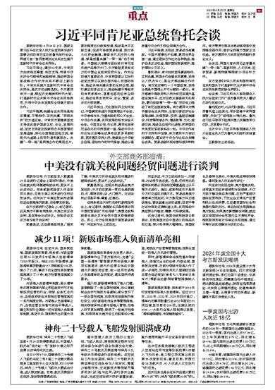 据新华社电 外交部发言人郭嘉昆24日在例行记者会上答问时表示,中美没有就关税问题磋商或谈判,更谈不上达成协议。商务部新闻发言人何亚东同日表示,目前中美之间未进行任何经贸谈判。任何关于中美经贸谈判