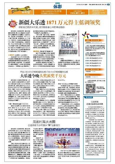 开出2注1825万派奖追加头奖+7注1014万派奖基本头奖 新快报讯 记者陆妍思报道 4月26日,超级大乐透迎来第25045期开奖,本期也是大乐透8.8亿元大派奖活动的第8期,当期全国共中
