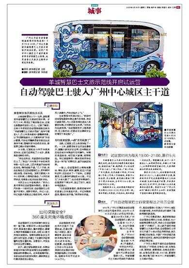 羊城智慧巴士文旅示范线开启试运营 自动驾驶巴士驶入广州中心城区主干道