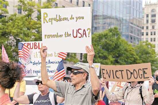 据新华社电 美国多地民众5月1日举行大规模游行集会,抗议特朗普政府在经济、移民、教育、税收等多方面的政策。 当天,首都华盛顿特区、洛杉矶、纽约、丹佛、芝加哥和费城等地均有大规模抗议活动。其中,纽约市当天有上千人参加了游行集会,抗议内容包括联邦政府遣返移民、漠视司法程序正义等。在洛杉矶市中心,约5000名民众集会抗议特朗普政府相关政策“欺压本地劳工、驱逐外来劳工”。 据集会活动组织方网站介绍,2日和3日美国多地还将继续举行大规模抗议活动。 美国媒体4月27日发布的联合民调结果显示,在特朗普第二任期将满百天之际,其执政支持率创下过去80年来美国历任总统同期最低纪录。多数民众反对他推出的多项政策,对美国现状不满,对经济前景担忧。