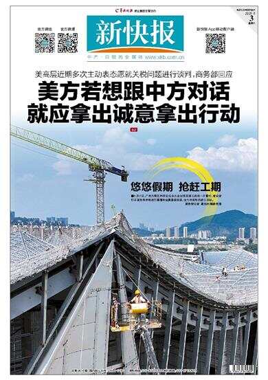 ■5月2日,广州大湾区科学论坛永久会址项目施工现场一片繁忙,建设者们正紧张有序地进行幕墙和金属屋面安装,全力冲刺年内竣工目标。 新快报记者 龚吉林/摄影报道