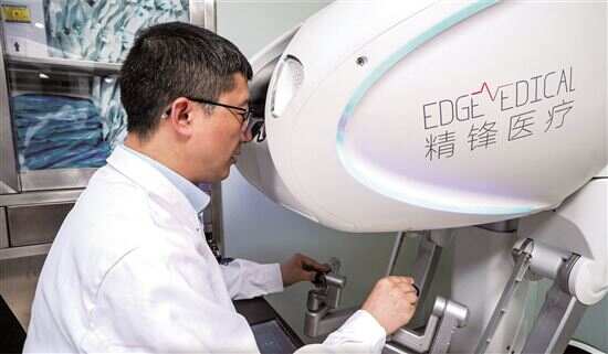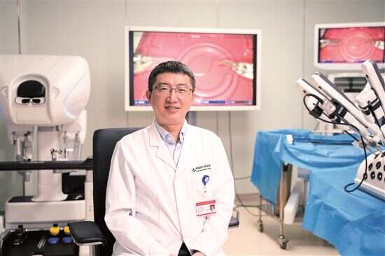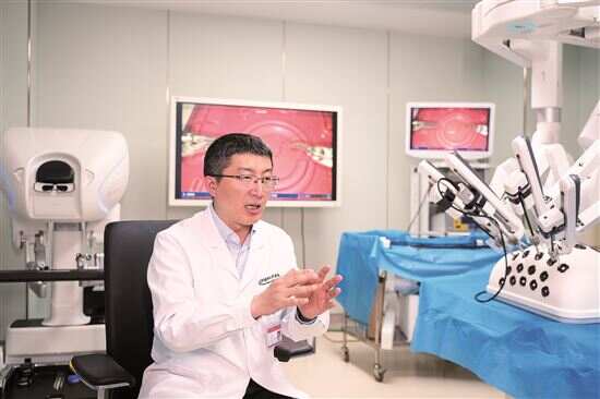 ■南方医科大学珠江医院泌尿外科徐啊白主任医师在演示操作手术机器人。 |