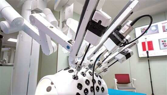 ■医生操作机械臂带动的手术器械,如同有了“千里眼”和“万能手”。 |