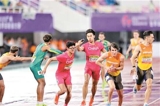 ■在男子4×400米最后一棒的交接中,付浩然接到了队友张起宁的交棒,并在随后全力冲刺,追上了西班牙选手埃尔塔,帮助中国队获得小组第二,直接晋级决赛。