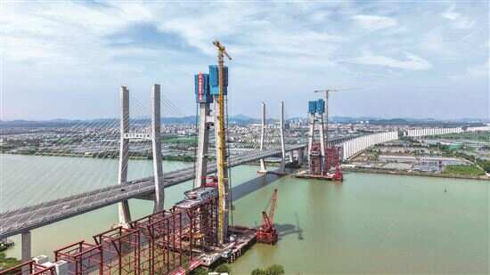■近日,深江铁路跨磨刀门水道主桥首个主塔封顶,为2028年全线通车的目标奠定基础。该桥横跨中山和江门两市交界的西江磨刀门水道,为140米高墩大跨斜拉桥。深江铁路串联深圳、东莞、广州、中山和江门等5座城市。工程建成后,深圳与江门可实现1小时内通达。